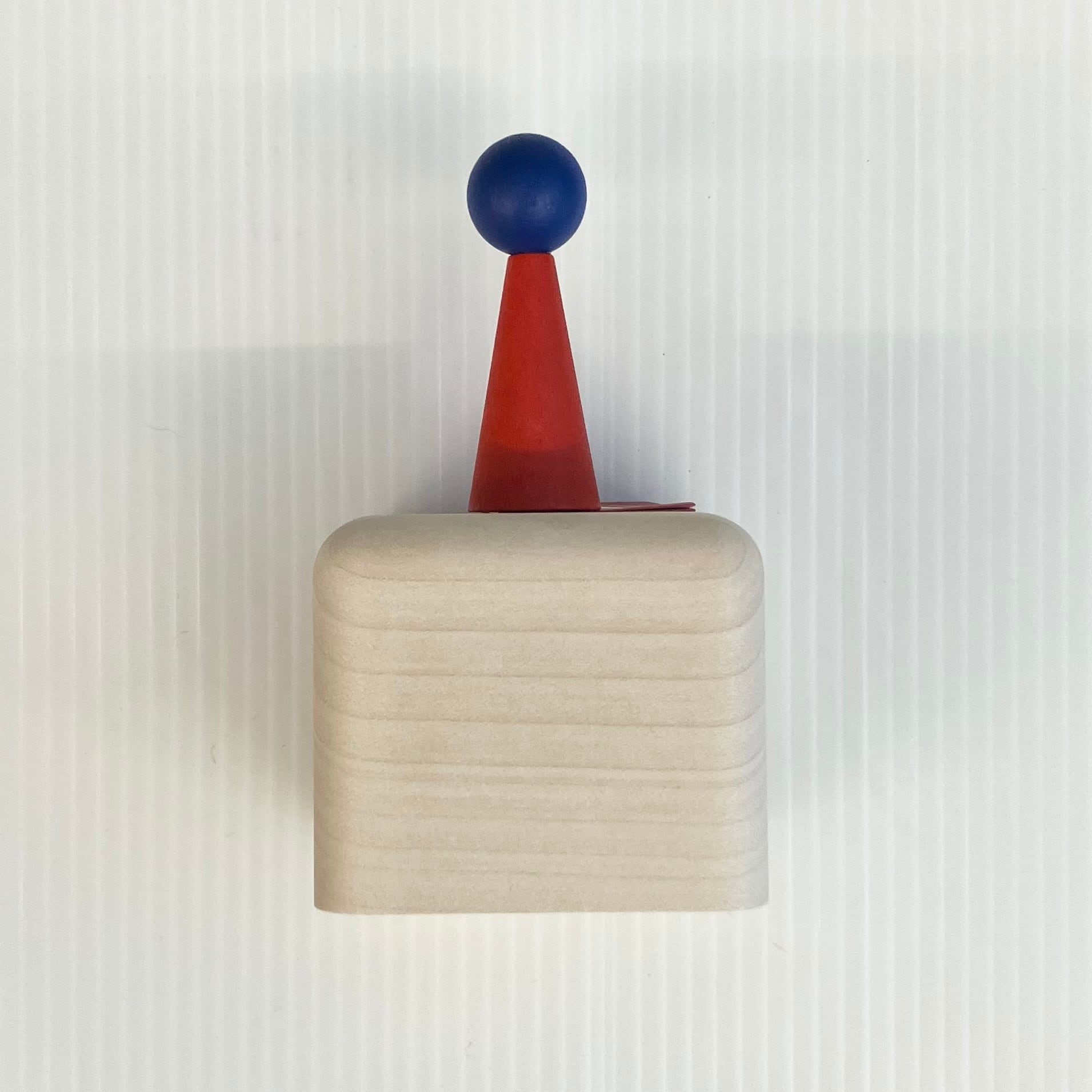 スイス・キーナー社の「オルゴールkato」です。大きさは7×7×14㎝、ひもを引っ張るとゆっくりと動きだし、倒れては立ち上がる様は人間に見えてきます。