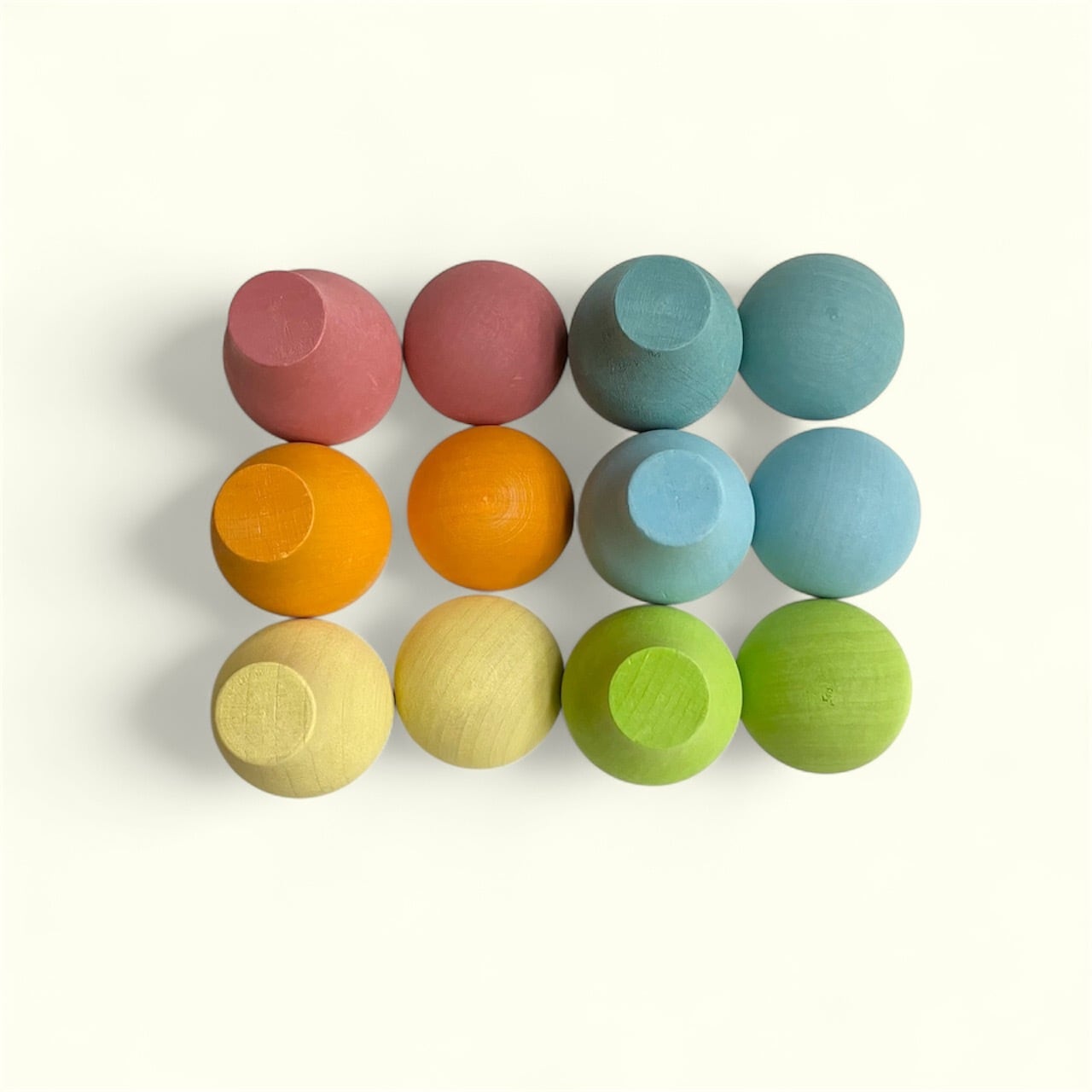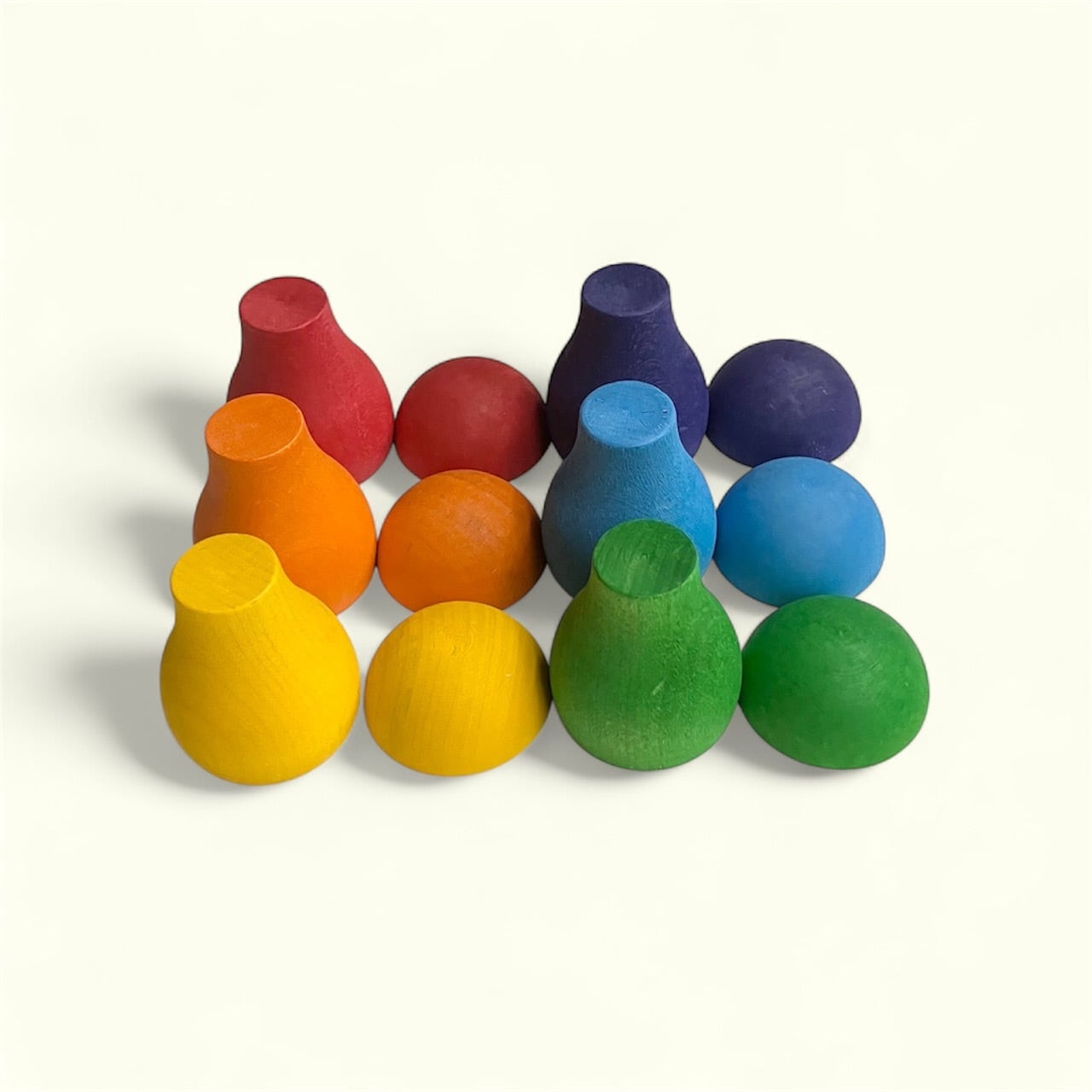 ドイツ・グリムス社の「レインボーキノコ」「パステルキノコ」です。カサの部分が6個、柄の部分が6個、計12個で構成されています。