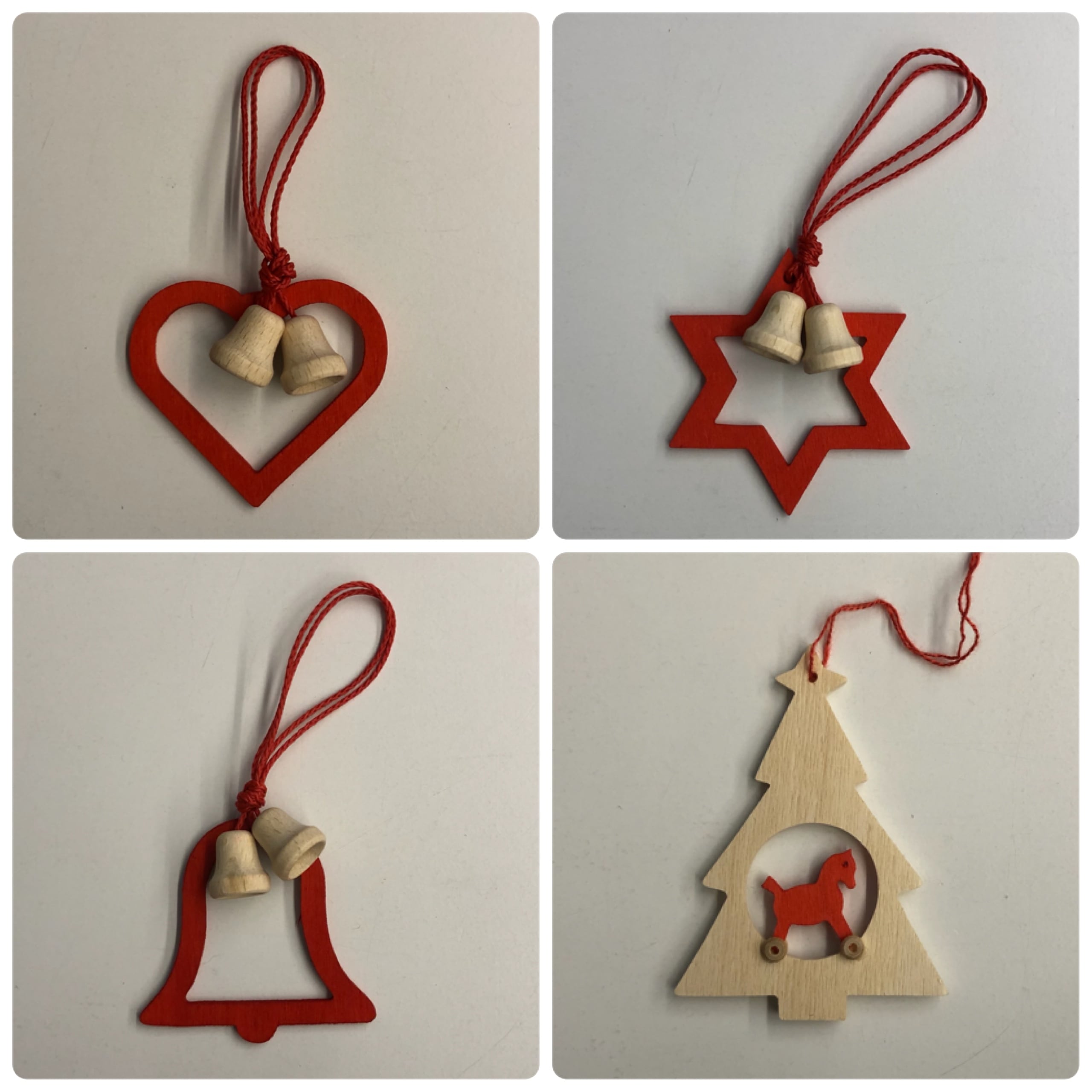 ドイツ・レロ社の白木と赤のコントラストが美しいオーナメントです。柔らかめの木で出来ていますが、バリも無く美しい仕上がりです。大きなツリーにも似合うオーナメントです。