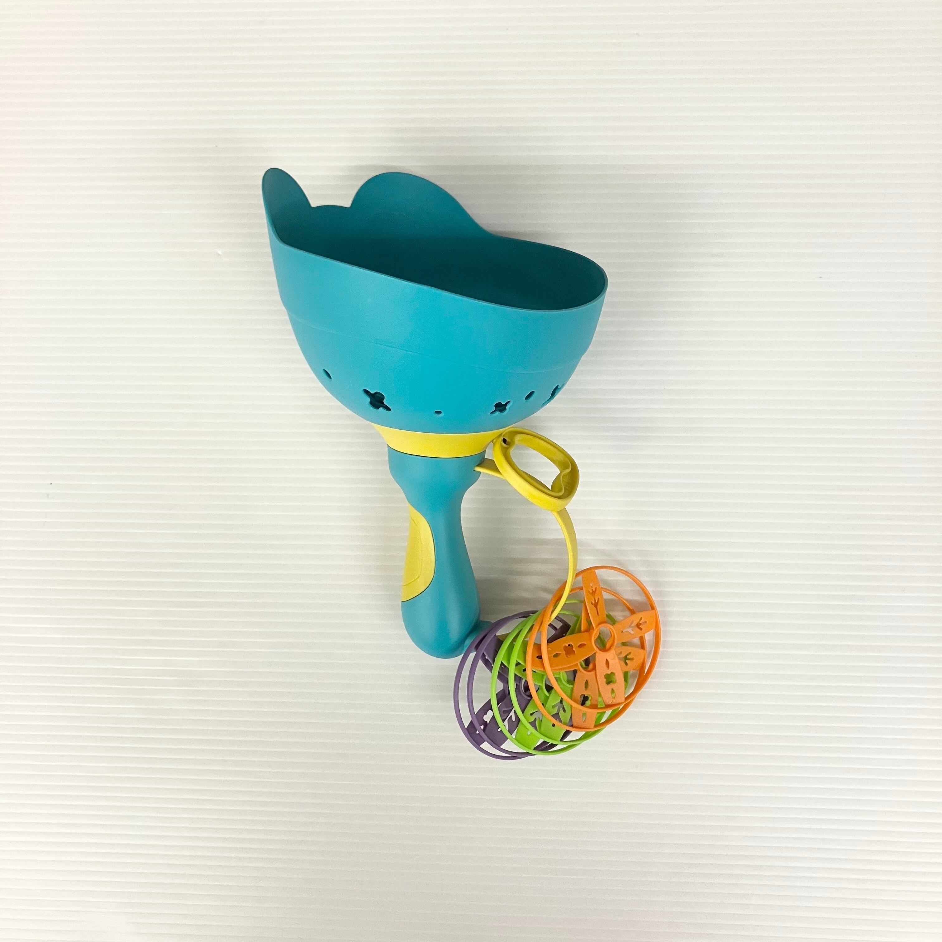 上手になればプロペラは一度に4枚まで飛ばすことができます。取る時に考えながら体を動かす遊びになります。必ず広い場所で遊んでください。