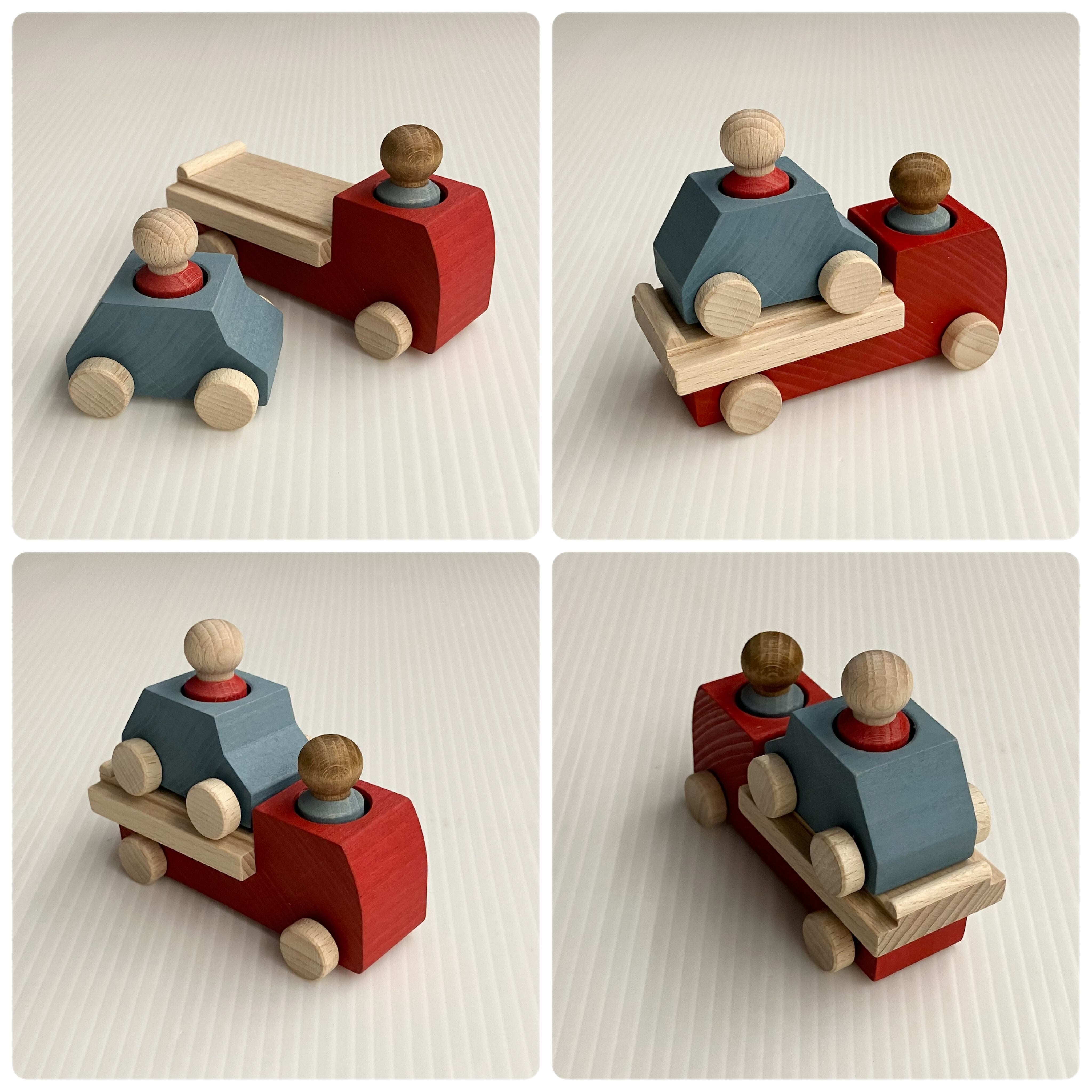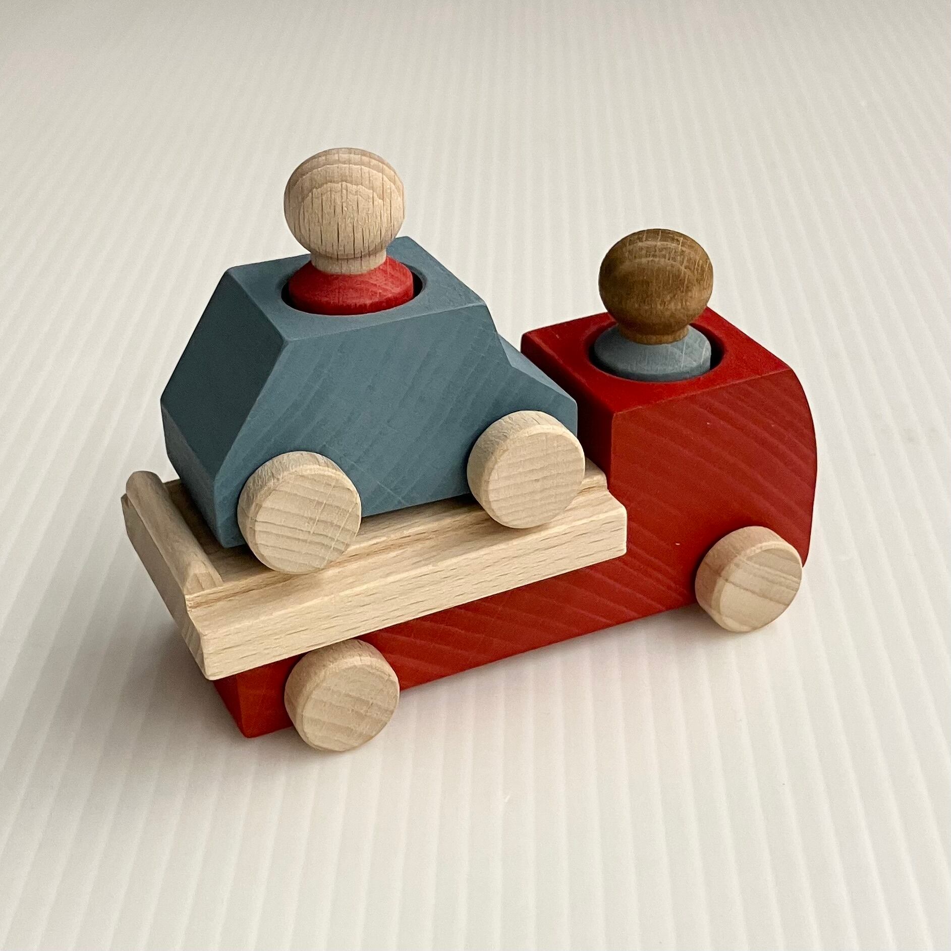 スペイン・ルブロナの「レッカー車 ファイアーレッド」です。構成は「レッカー車×1、ミニカー×1、人×2」、長さはレッカー車10.3㎝、ミニカー5.5㎝です。 ブナの木でできた子どもたちが大好きな働く車です。レッカー車にミニカーを載せたり、それぞれ自由に遊ぶこともできます。 品 番:LL122002 メーカー:スペイン ルブロナ社 サイズ等:レッカー車10.5㎝ 年 齢 : 3歳〜