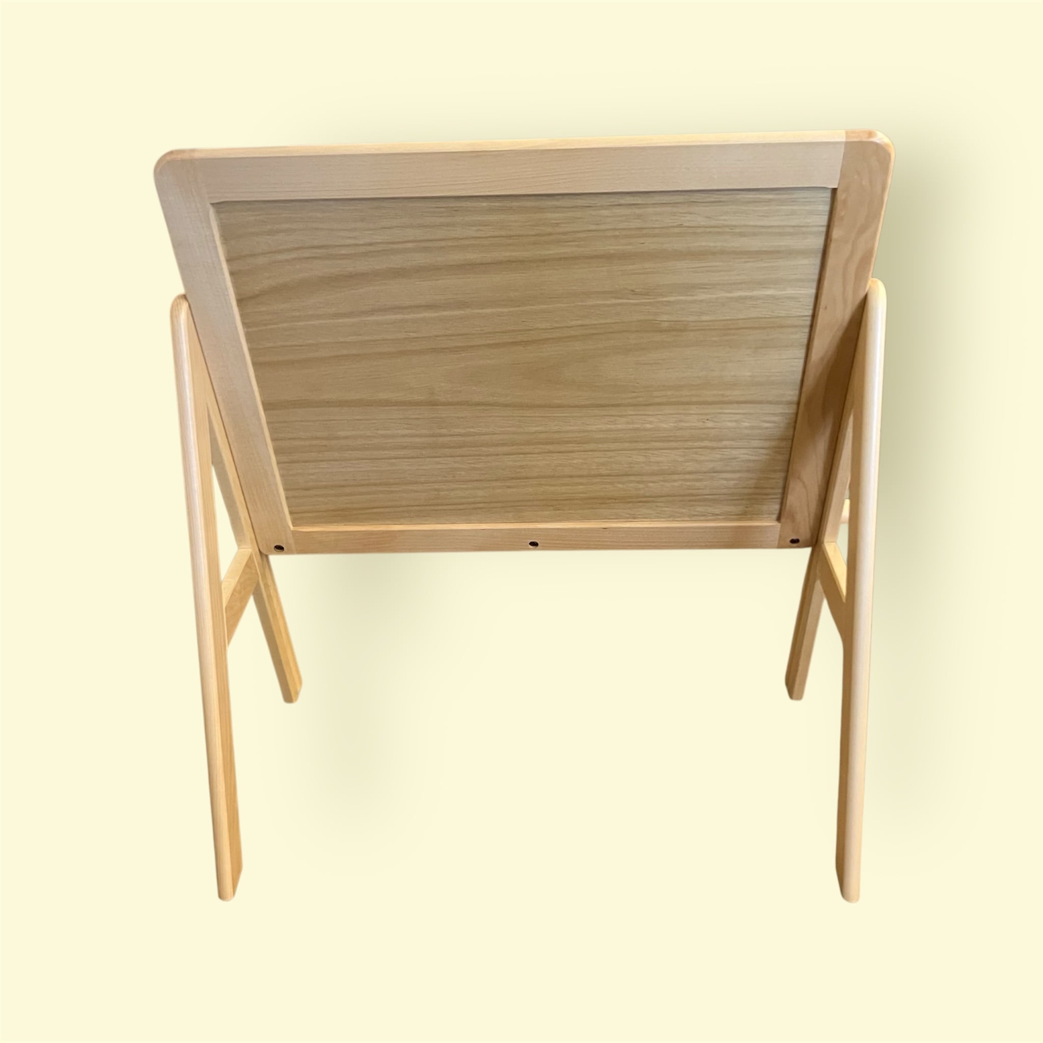 日本・ブロック社の「おえかきボード」です。本体の大きさは68×40×94(82・70)㎝、ボード面の大きさは58×43.5㎝、高さは3種に調整できます。