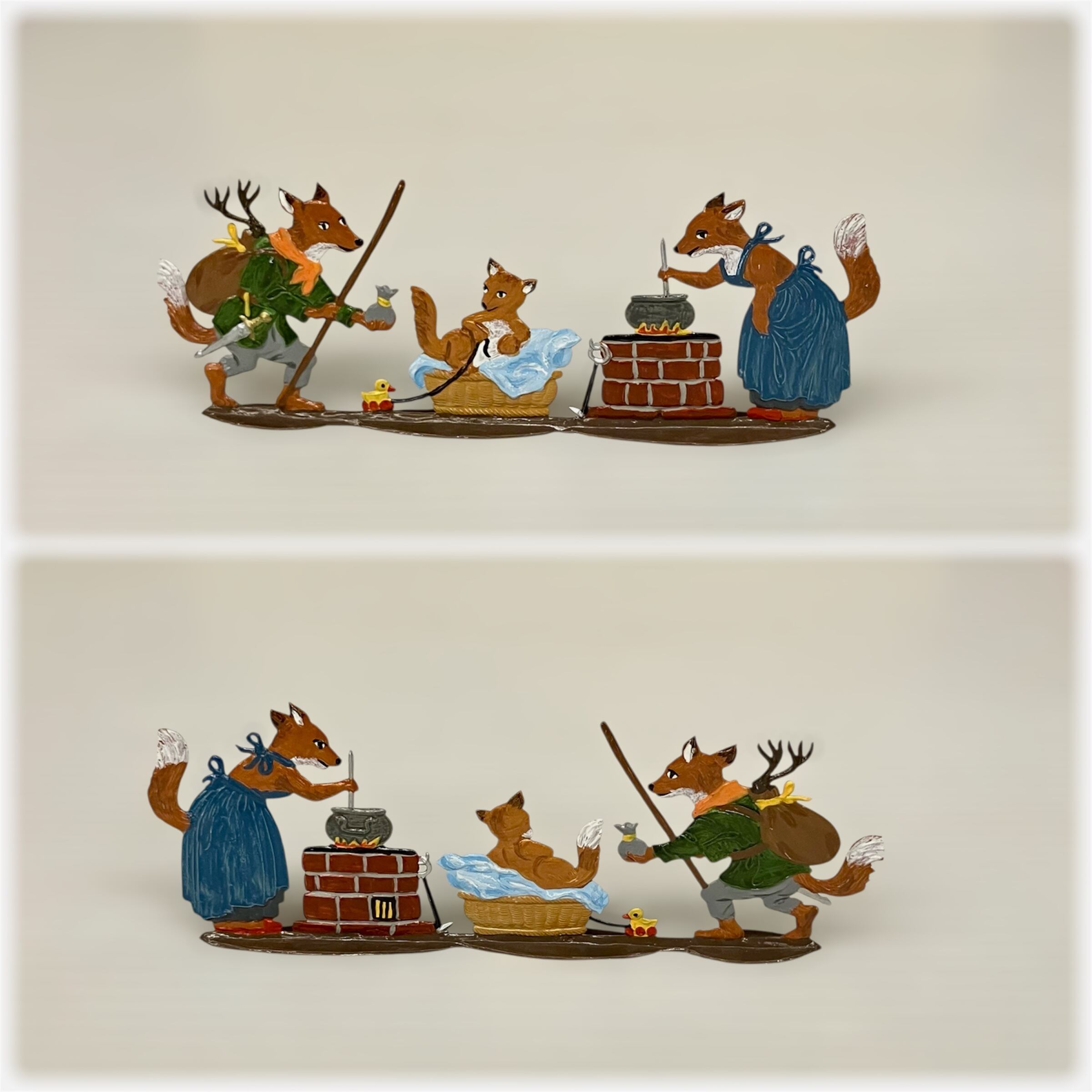 ドイツ、バベット・シュヴァイツァー工房の「キツネのファミリー」です。1796年創業の工房で、ミュンヘン近郊のディーセンで作られています。