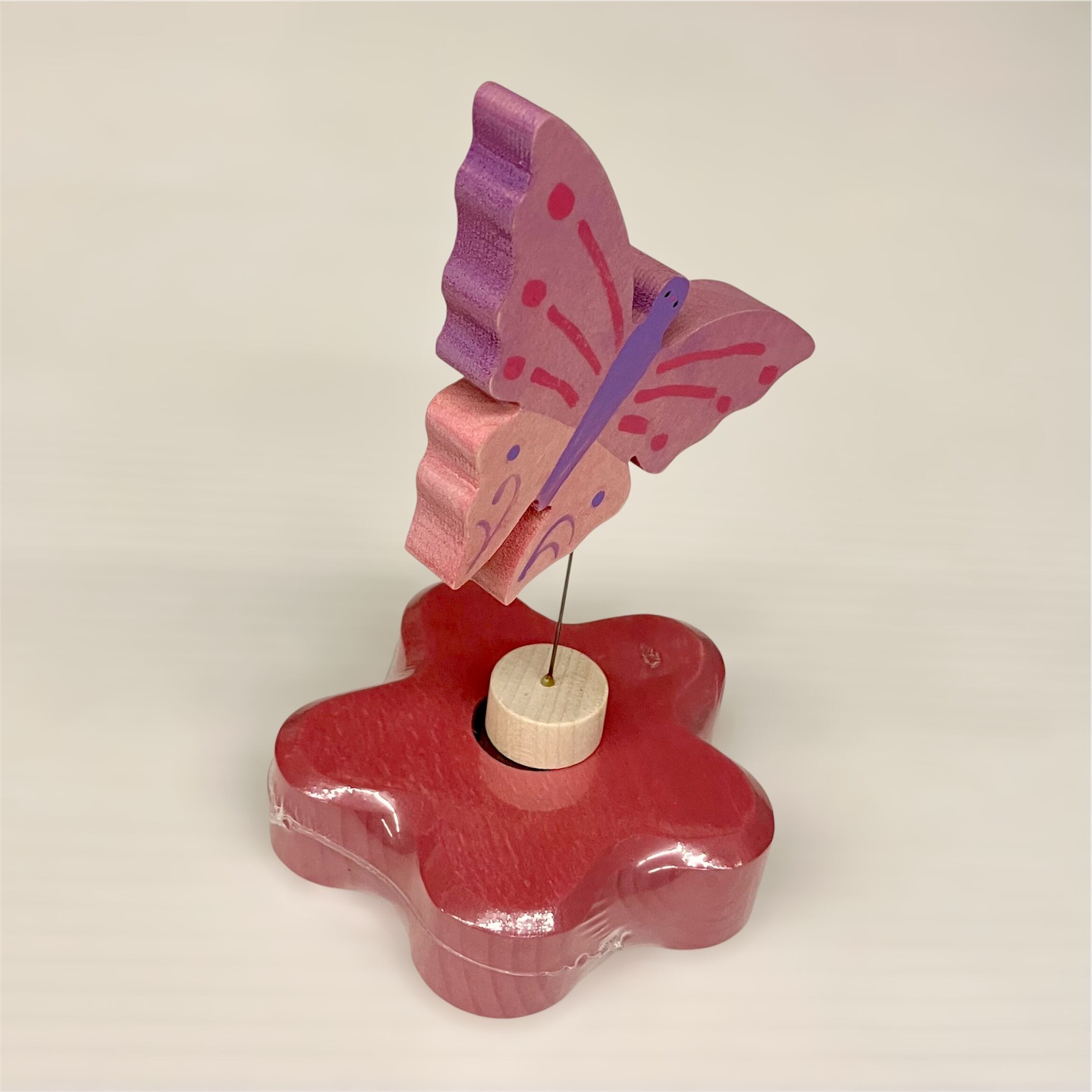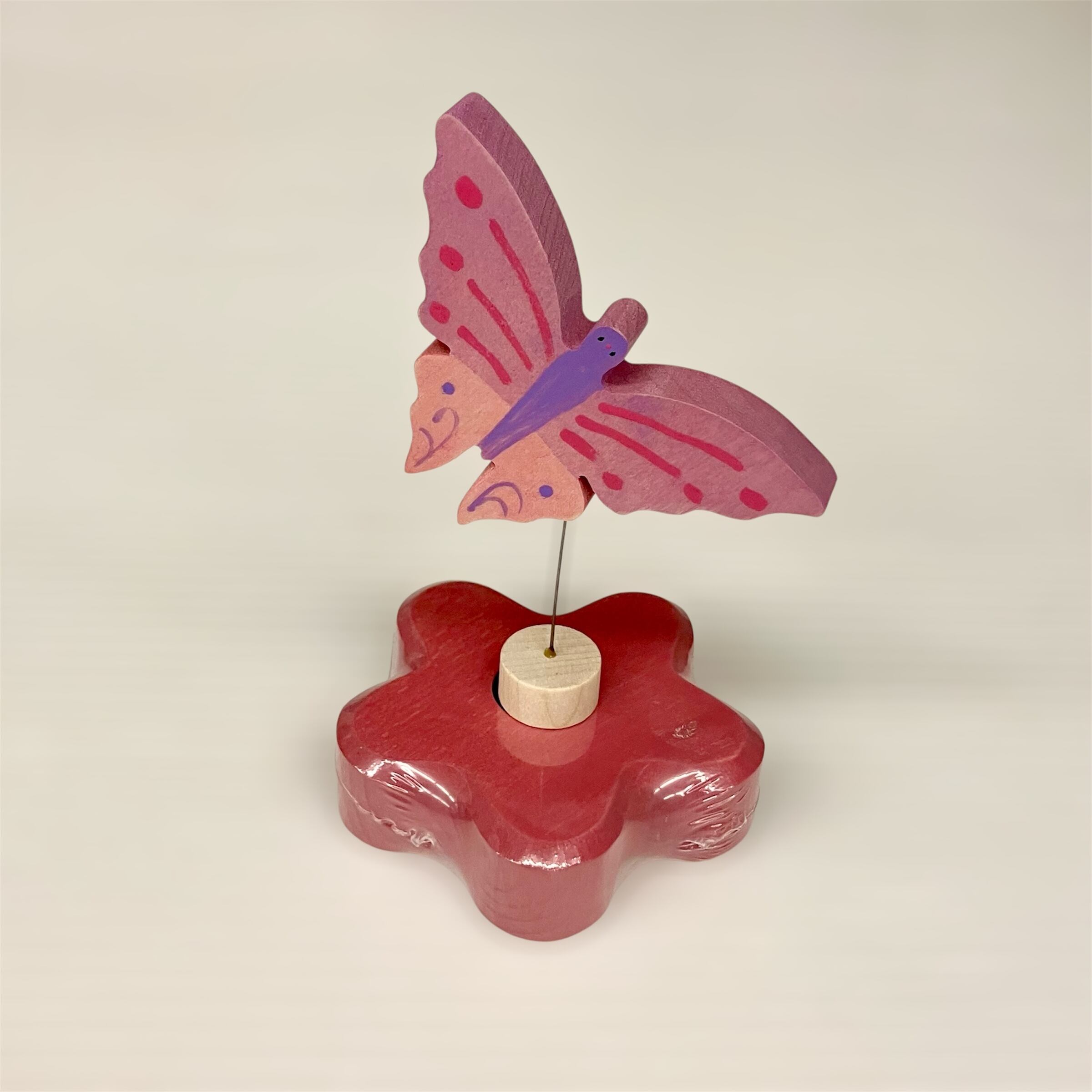 目は「デコラティブ フィギュア ピンク バタフライ」です。スタンドの「ピンク フラワー」に飾ってみました。 高さは約10㎝、ピンクの濃淡が美しい手描きのバタフライです。羽の部分が波型にカットされ優雅に感じます。 「ピンクフラワー」(幅約7㎝)のスタンドに飾ると、お花の上にとまっているようにも見えます。 品 番:4240 メーカー:ドイツ グリムス社 サイズ等:H10㎝