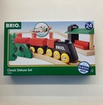 ブリオの基本レールセットです。プラスチックが使われている汽車が増えましたが、「クラシックシリーズ」は全て木製です。レトロな汽車や小さな駅舎も可愛いセットです。