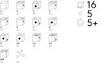 パーツの内訳は、土台となる溝のない立方体(1番)が2個、基本パーツ2番〜12番 が11種13個、ビー玉入れ(MK)1個、計16個のセットです。