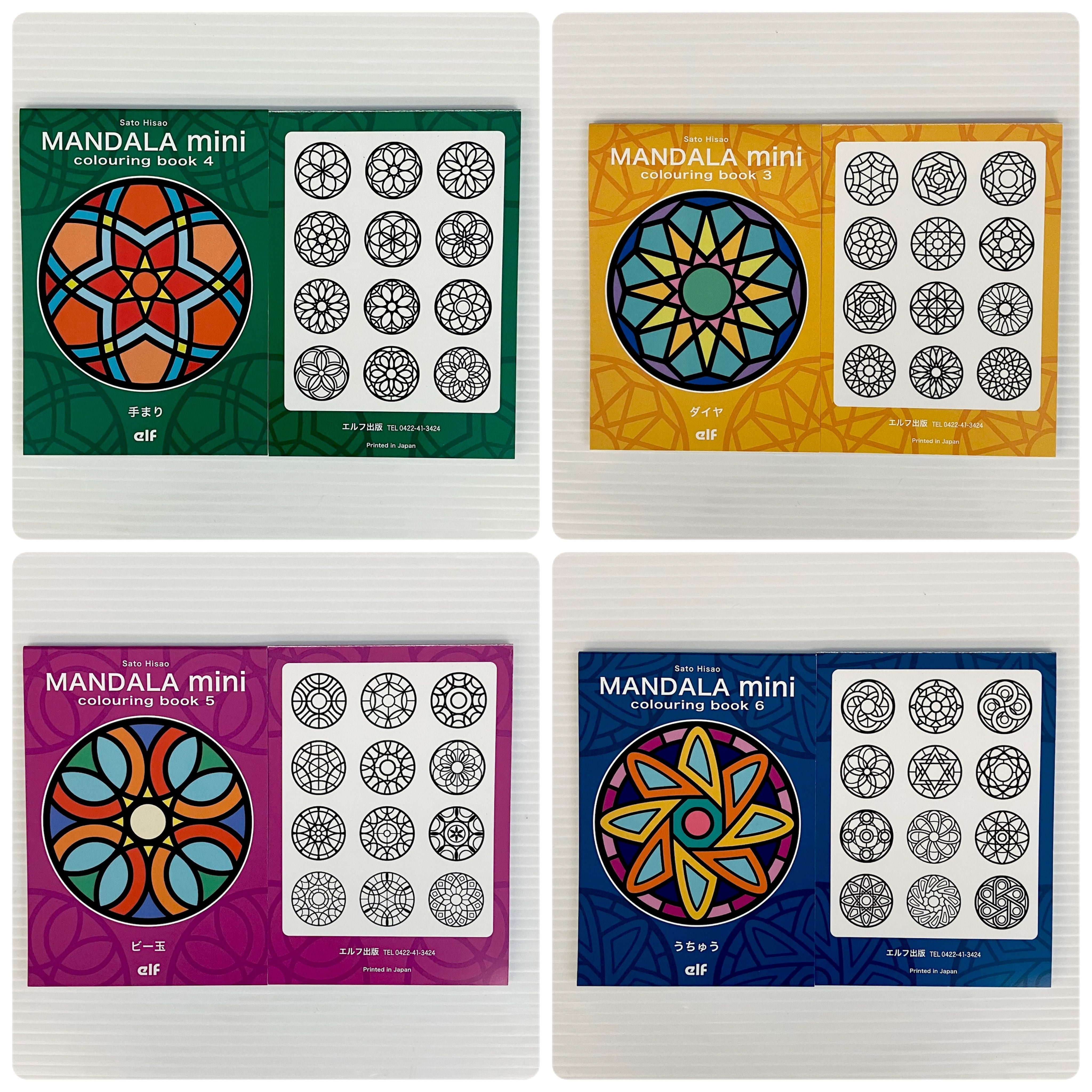 日本・エルフの「ぬり絵マンダラ ミニ」4種です。ペーパークラフト デザイナーSato Hisaoさんデザインです。