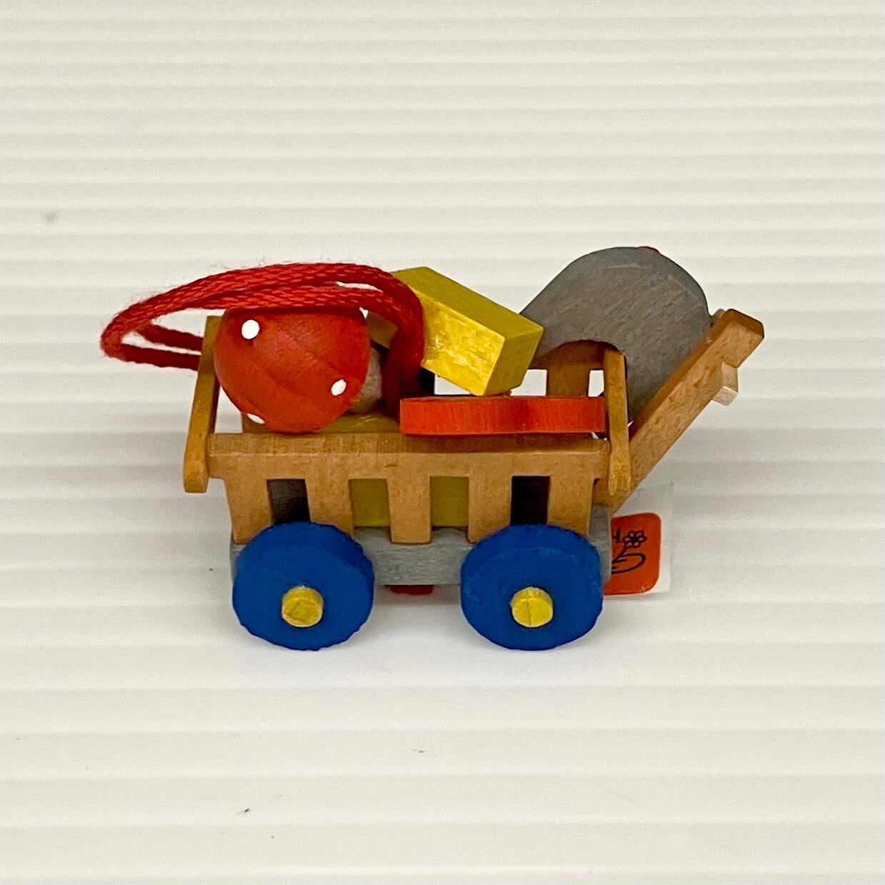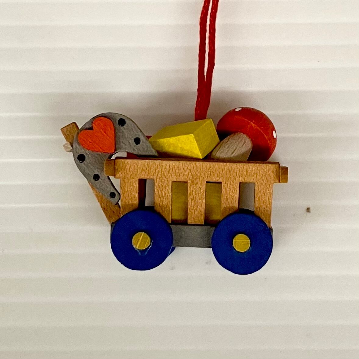 11〜13枚目の写真は「オーナメント・トロッコ」です。大きさは5㎝、荷物をたくさん積んで走っています。