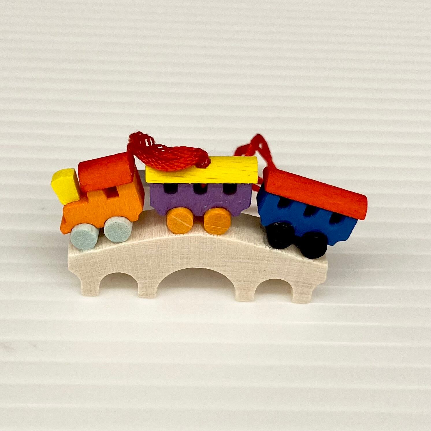 2〜4枚目の写真は「橋の上の汽車」です。長さは4.7㎝、アーチ型の橋の上を可愛い3両の汽車が通っています。