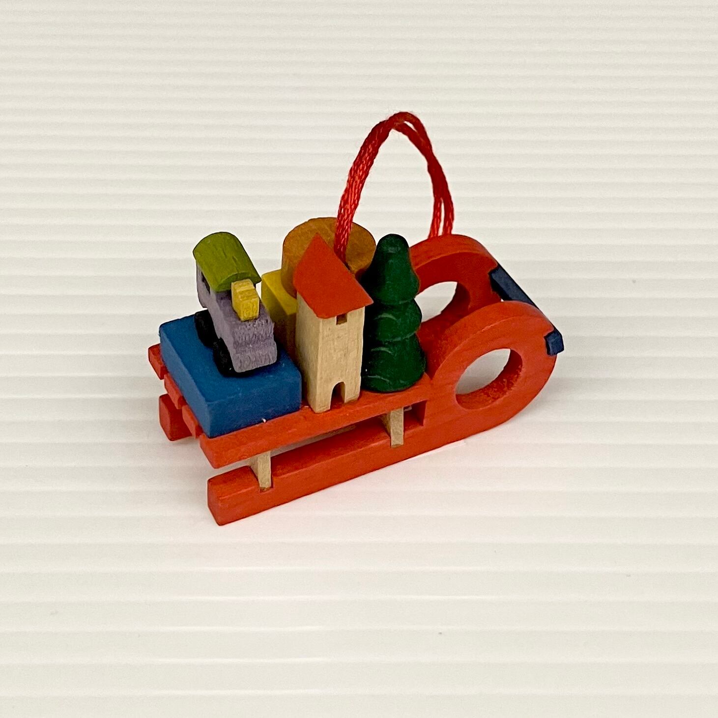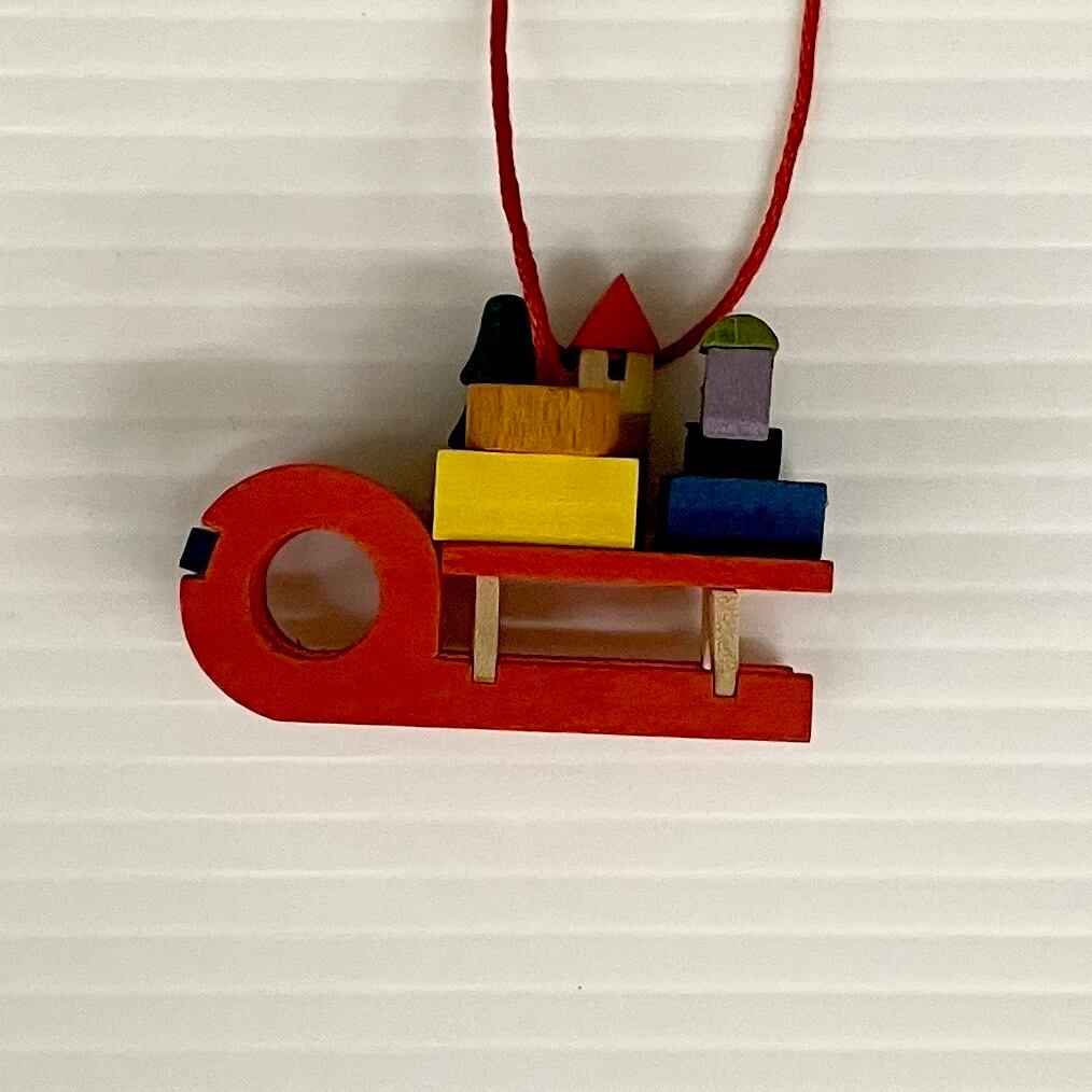 5〜8枚目の写真は「オーナメント・そり」です。大きさは5㎝、赤い色がクリスマスツリーの緑によく映えます。