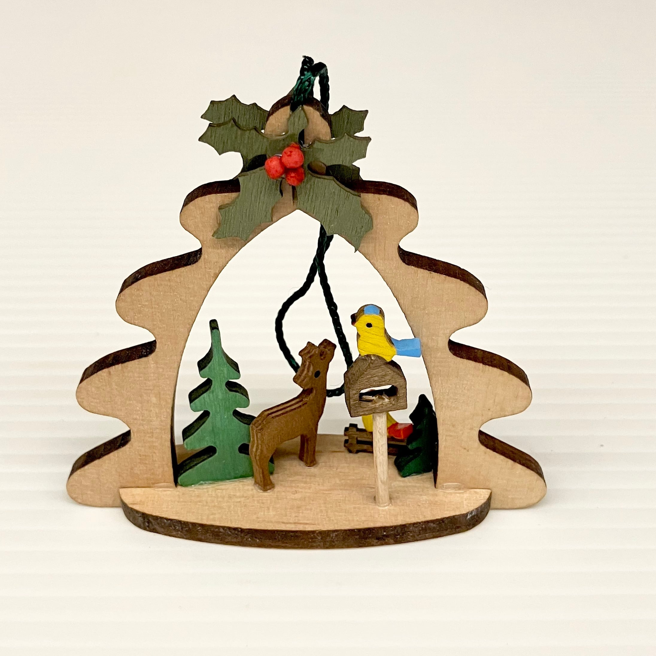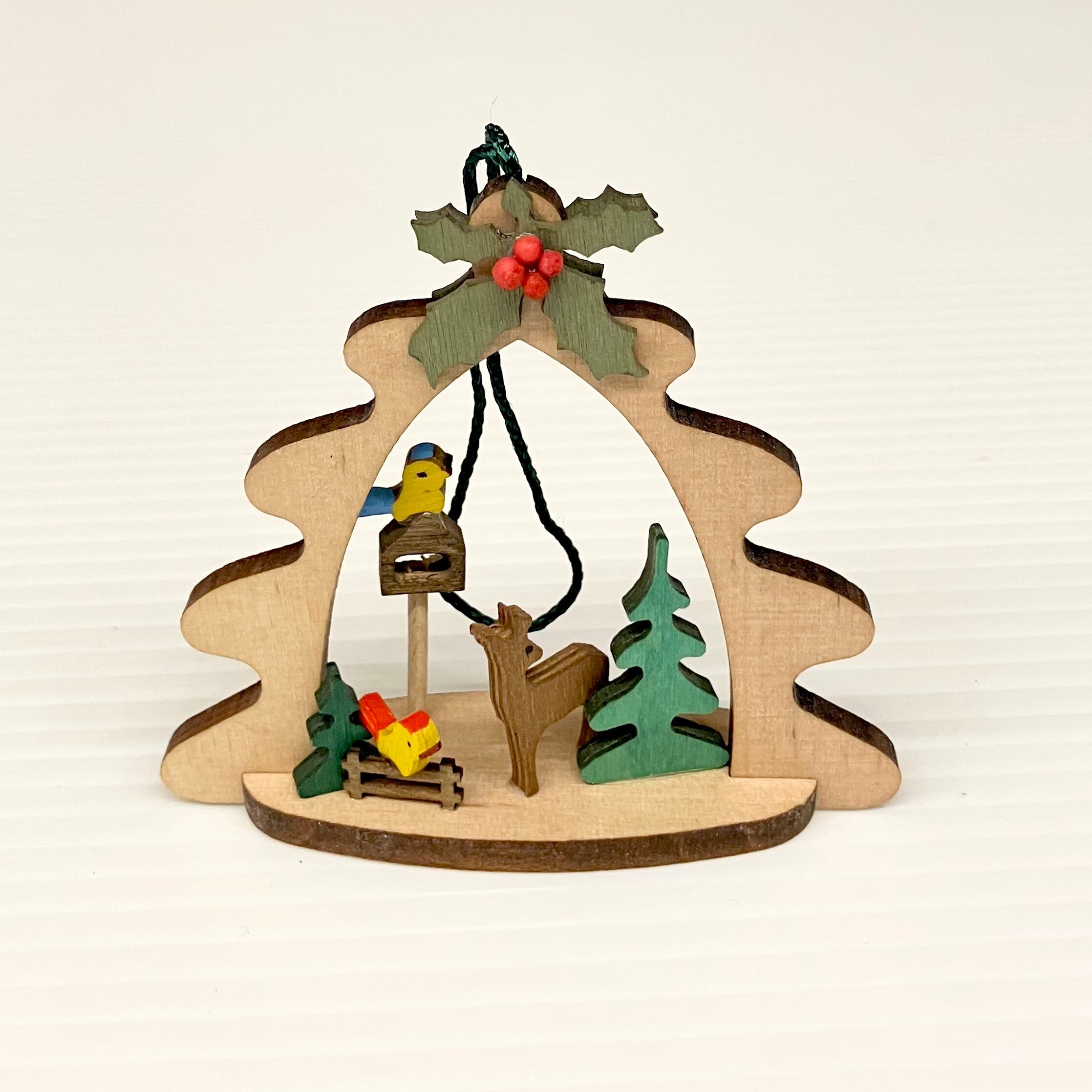 1〜3枚目の写真は「立体オーナメント 小鳥のおうち」です。小鳥と鹿がお話をしているように見える可愛いオーナメントです。