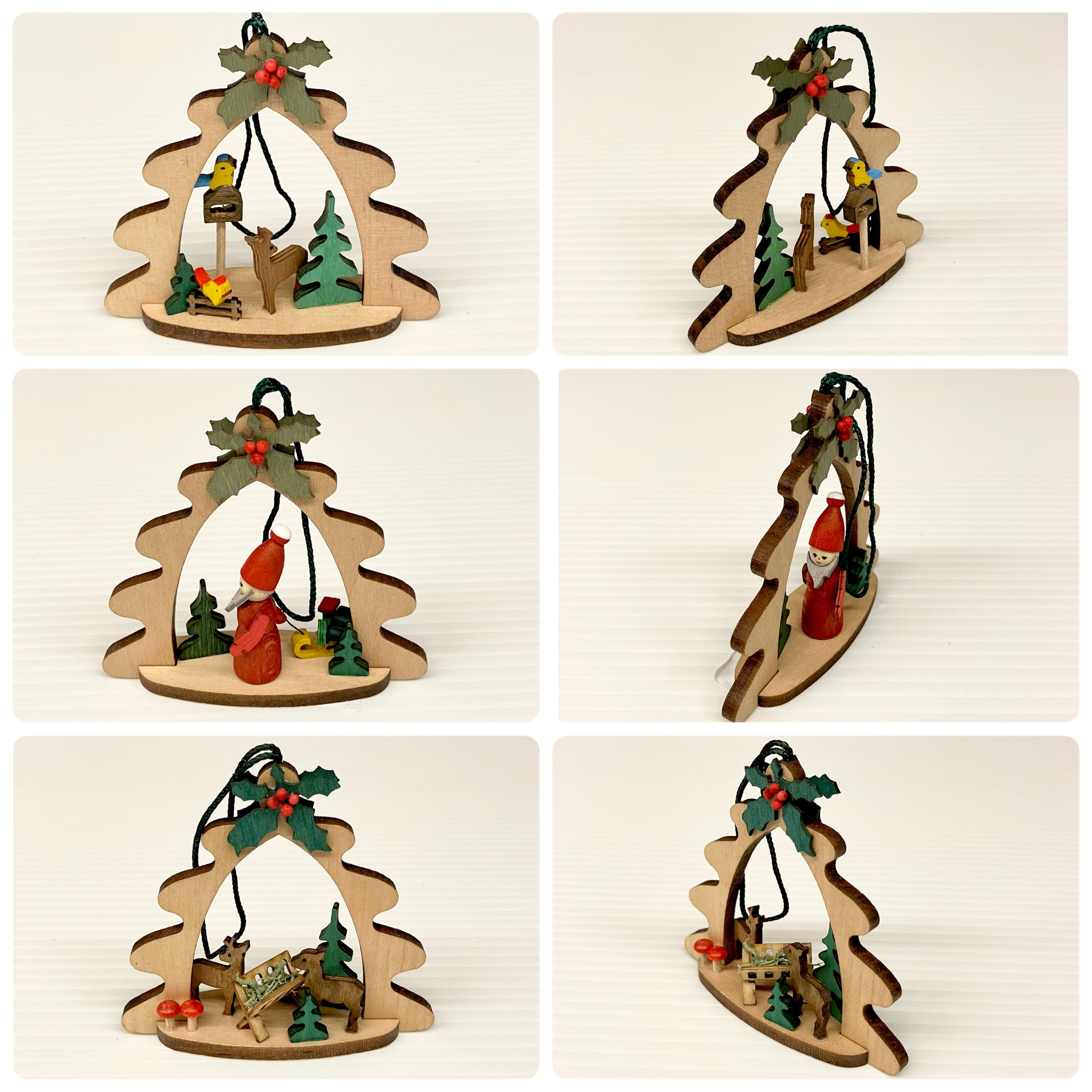 ドイツ・クナート工房の立体オーナメント3種で、大きさはどれもW6.5×H7×D2㎝です。それぞれに物語を感じるオーナメントです。