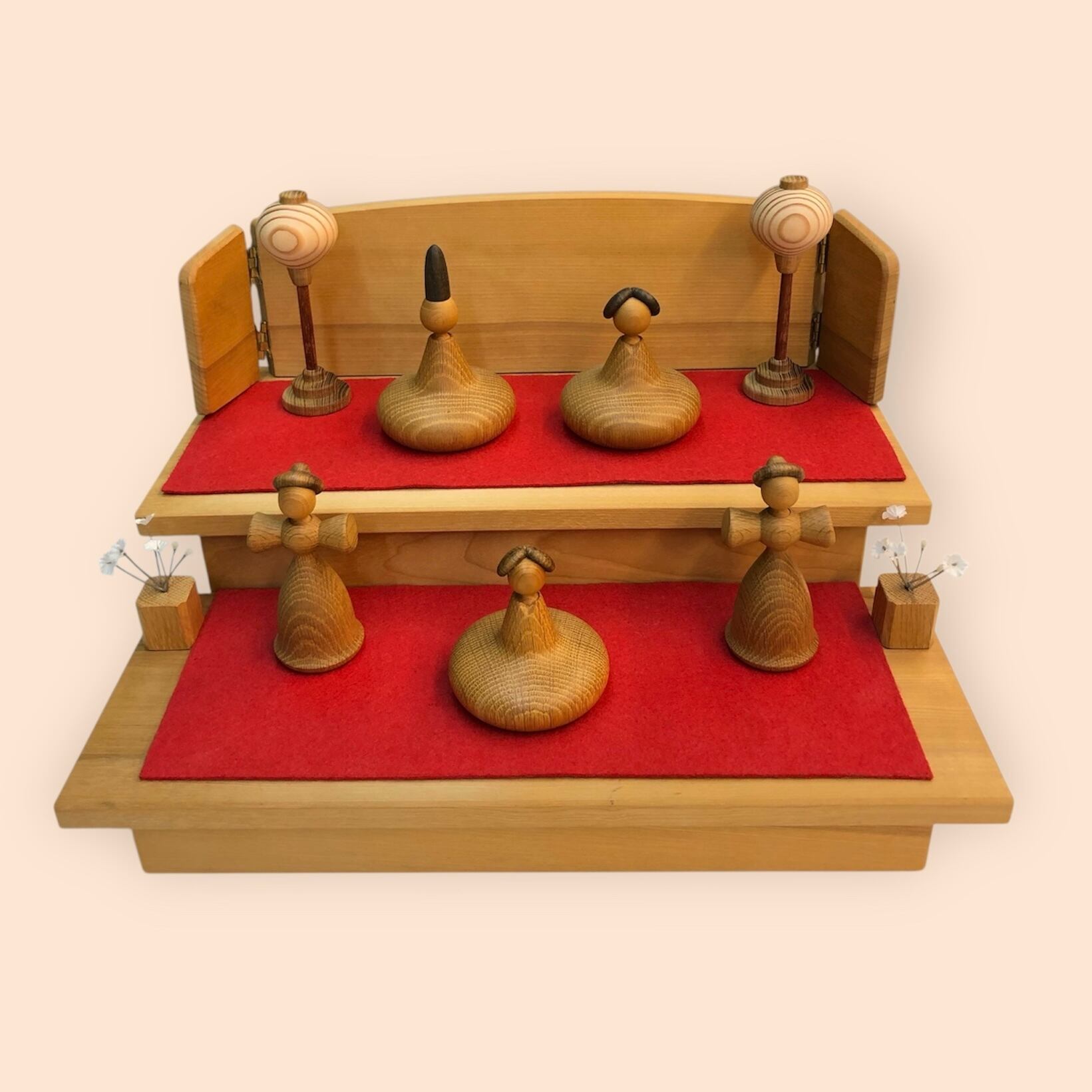 北海道の木地師、三浦忠志さんがろくろを挽いて作るおひな様「ひな1段セット」です。